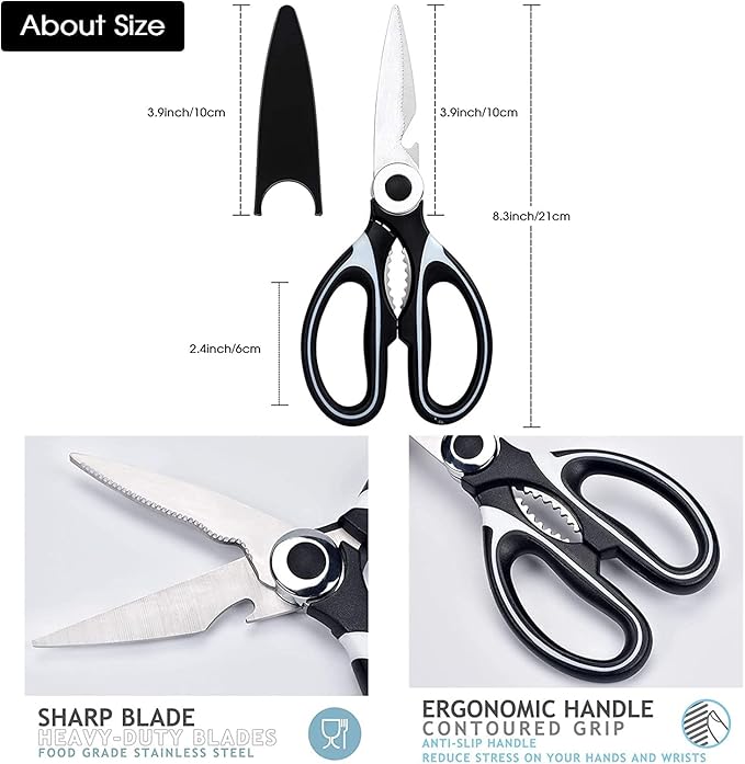 THE SWISS ARMY KNIFE FOR THE KITCHEN - Multi-purpose scissors that can cut chicken/poultry, meat, vegetables, fresh and dried fruits, herbs, chocolate, and even string, packaging and flower stems. Built-in bottle opener is convenient and can also be used to crack open nuts.