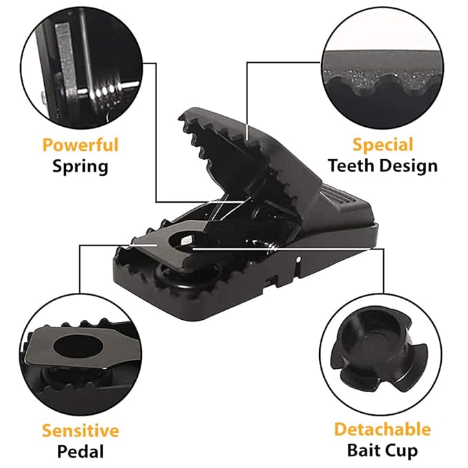 REUSABLE: The rat traps are made from premium ABS plastic our mouse traps are super easy to clean so they are ready to reuse immediately.- EXTREMELY QUICK TRIGGER: The mouse traps with open trap design, is easier for mouse find and approach, quick responce trigger, once the mouse slightly touch the mouse trap, the device will immediately incapacitate rats by shutting down the wide mouth clip tightly, no way to escape.